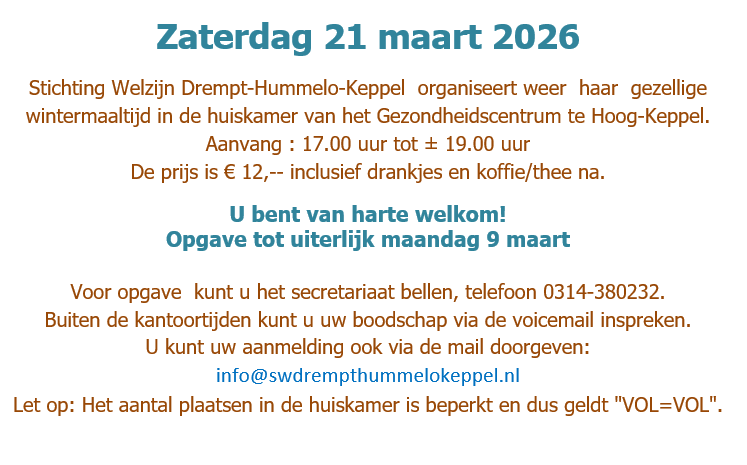 Wintermaaltijd - zaterdag 21 maart 2026 Wintermaaltijd - zaterdag 21 maart 2026